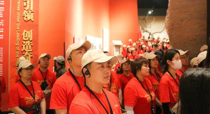 榮盛耐材先,大家來到本次活動的榮盛耐材站——紅旗渠紀念館,實地參觀了當年修渠時留下的珍貴照片。在講解下,通過千年旱魔、太行豐碑、山河巨變、精神永恒五個展廳回顧了當年的修渠歷程。一幅幅生動的歷史照片記錄了林州百姓艱苦奮斗的堅毅精神;一件件珍貴的修渠文物無聲地表達了林州百姓人定勝天的頑強意志,展現了黨帶領林州人民十年奮戰、改造河山的震撼場景,也唱響了紅旗渠的強音。